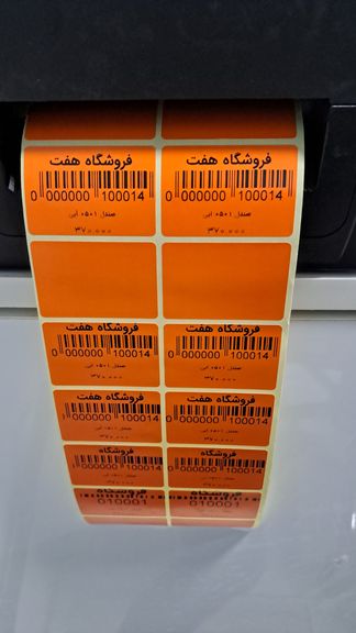 دو ردیفه جنس پی وی سی اندازه هر برچسب ۵۰ میلیمتر x ۳۵ میلیمتر رنگ نارنجی رول ۱۵۰۰ عددی